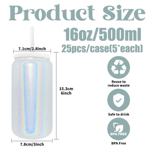 100pcs 16oz frosted acrylic libbey plastic can with straw for vinyl/uv dtf sticker & 50pcs 16oz sublimation glitter cans