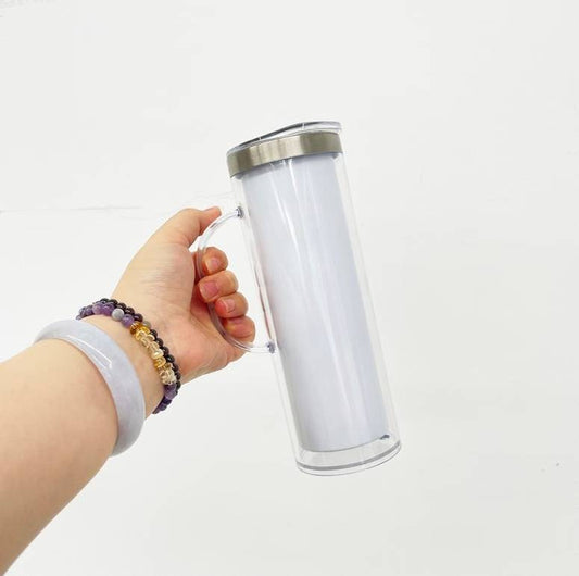 20oz Stainless Steel White Sublimation Snow Globe Skinny Tumblers With Acrylic Handle -25pcs