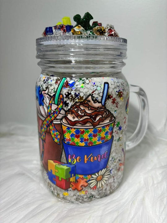 20oz Snow Globe Double Walled Plastic Mason Jars with Handle -25pcs