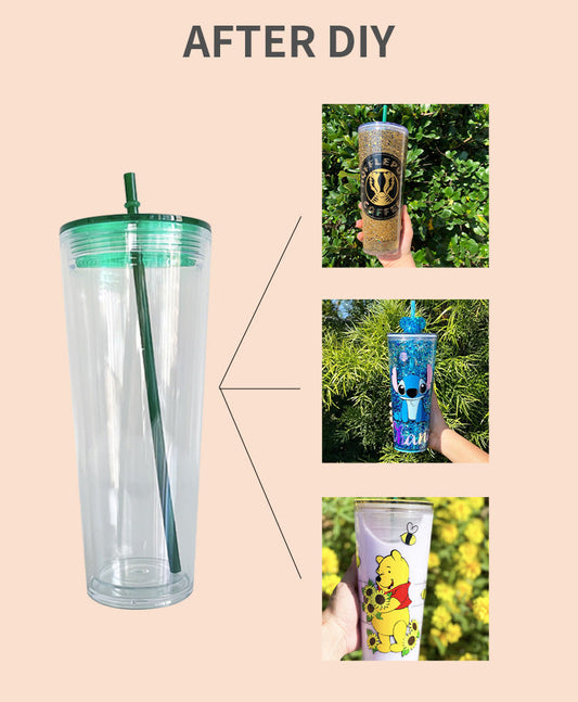 24oz Clear Insulated Double Walled Plastic Acrylic Cups Snowball Snowglobe Tumbler With Lids And Straw-