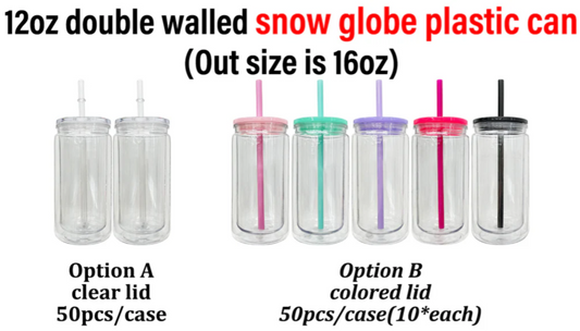 150pcs 16oz sublimation glass can & 100pcs 16oz plastic snow globe