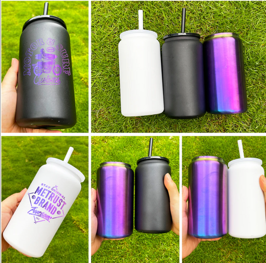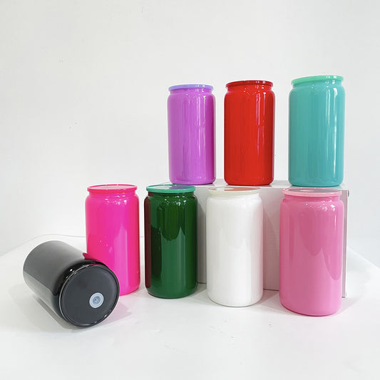 USA RTS- 16oz sublimation clear glass can with bamboo lids and plastic straws-25pcs